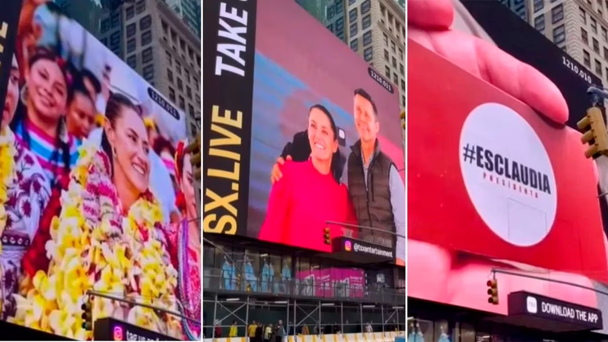 PAN presenta queja ante el INE por propaganda de Claudia Sheinbaum en Times Square