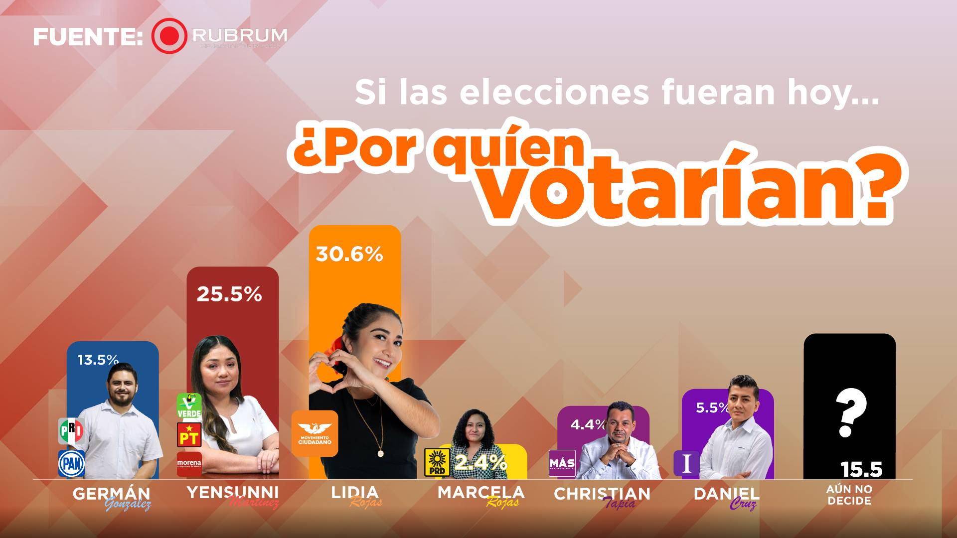 Cabe señalar que, Rubrum, es reconocida por su precisión en estudios demoscópicos previos, y esta ocasión reveló que el 33.2% de los encuestados manifestaron su preferencia por la candidata de Movimiento Ciudadano. Con este porcentaje, Lidia Rojas Fabro se sitúa en una posición privilegiada frente a sus adversarios políticos, superando a Yensunni Martínez de la coalición Morena-PT-PVEM, quien alcanzó el 25.5% en la intención del voto, y a Germán González, que obtuvo un 13.5%.