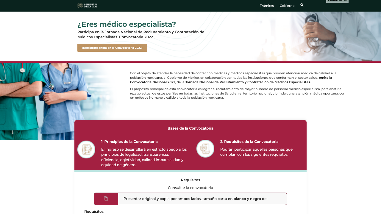 Este martes 24 de mayo, el Gobierno de México lanzó la convocatoria para emplear a médicos especialistas; la plataforma para realizarlo ya se encuentra disponible y cuenta con 13 mil 765 plazas con sueldos atractivos para los postulantes.