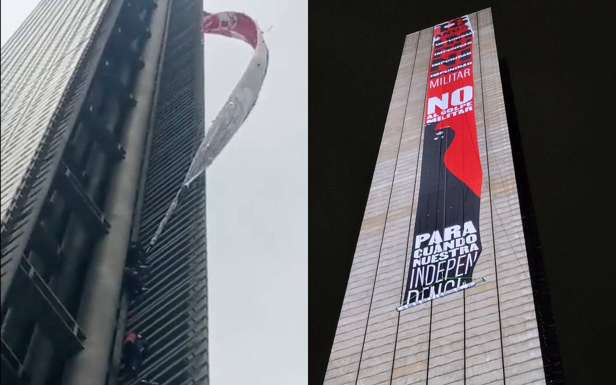 Retiran de Estela de Luz la manta de protesta contra la violencia y la militarización
