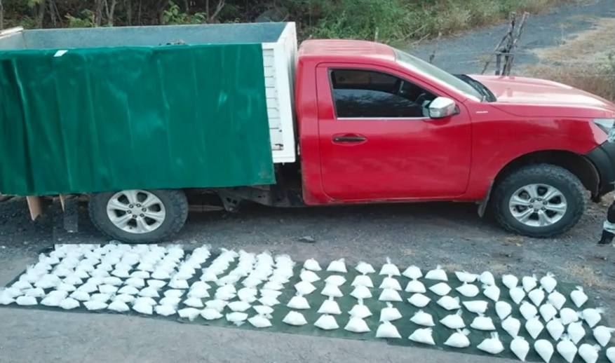 Elementos del Ejército Mexicano y de la Guardia Nacional decomisaron 115 kilogramos de posible metanfetamina en la Sindicatura de Costa Rica del municipio de Culiacán.