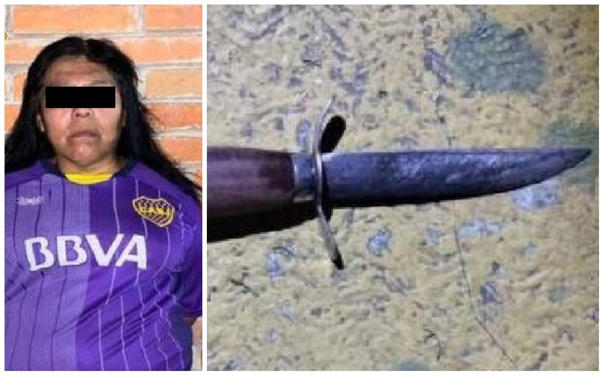 Policías detuvieron al agresor y a una mujer, de 56 años de edad, quien portaba el cuchillo tipo daga, y se identificó como la madre del responsable.