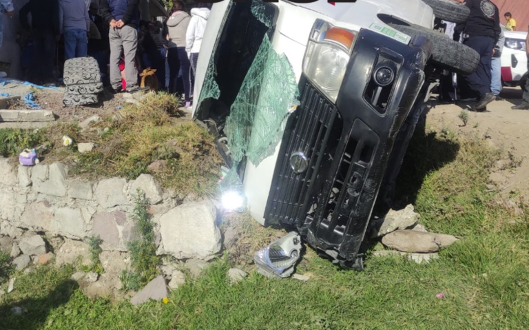 Alrededor de las 10:00 horas de este lunes, una camioneta del transporte público volcó mientras circulaba por calles de la segunda sección de la colonia Benito Juárez, Ecatepec, Estado de México.