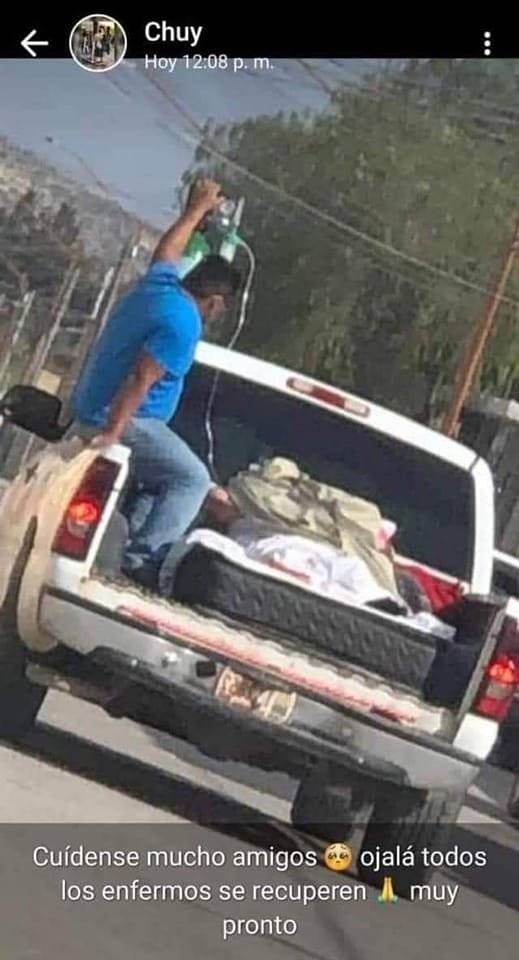 Por medio de redes sociales circula una fotografía en donde se aprecia como una mujer de la tercera edad es transportada al hospital en una camioneta de carga ya que los servicios de salud de Tamaulipas le negaron la posibilidad de ser transportada en una ambulancia.