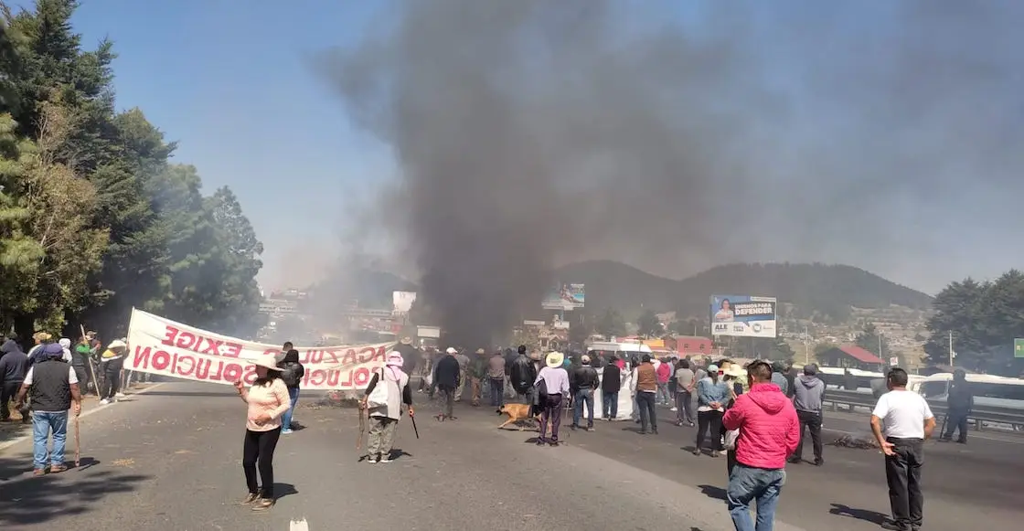 Elementos de la Secretaría de Seguridad del Estado de México replegaron a comuneros de San Jerónimo Acazulco, Ocoyoacac y Acopilco que bloqueaban la carretera México-Toluca. La vialidad se encontraba bloqueada en ambos sentidos debido a la protesta de los manifestantes que colocaron llantas y palos encendidos para impedir el paso de los automovilistas.